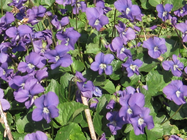 Spring has come early. One Japanese Maple is entirely in leaf and the other is following quickly. The violets have made a purple carpet in the that space enclosed by the monkey grass border. I hope we don’t get a freeze because there is no way to protect the big Maples.